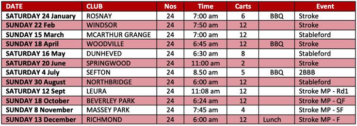 Please ring, email or text Secretary (0408 615 609 or craignapier@bigpond.com) by WEDNESDAY NIGHT OF GOLF WEEK if you can OR cannot play.