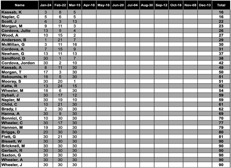 Yearly Pointscore